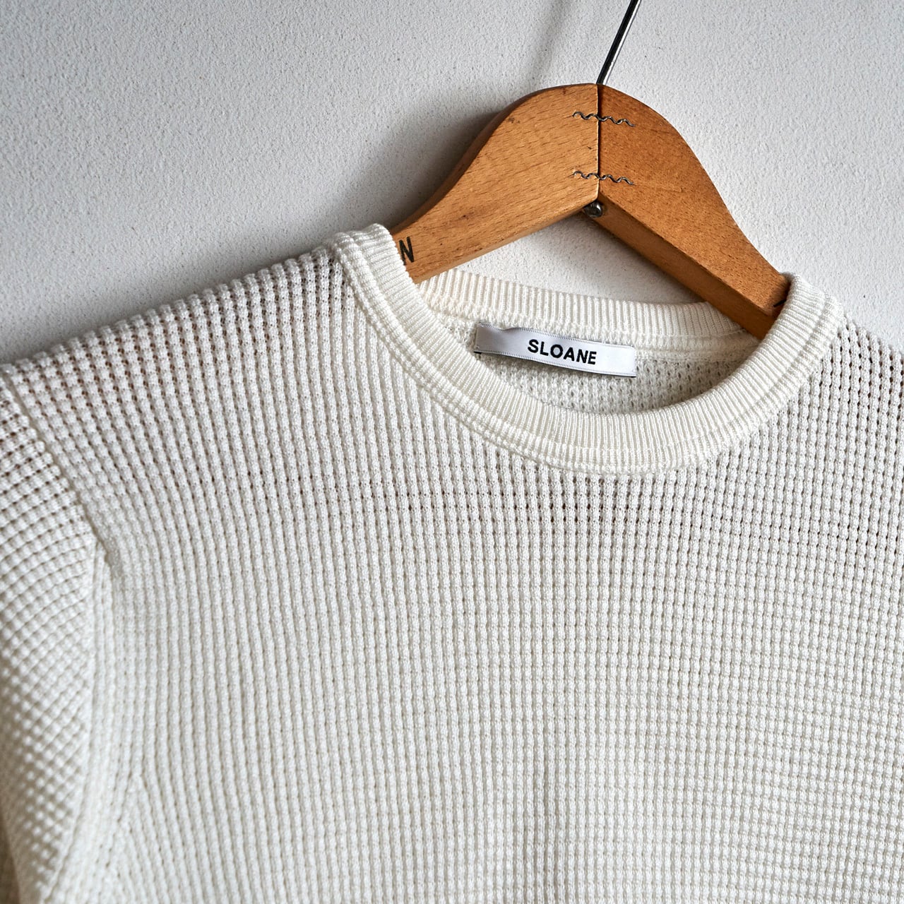 【40%off sale】SLOANE スローン 12G コットンワッフル編み 長袖クルーネック アイボリー