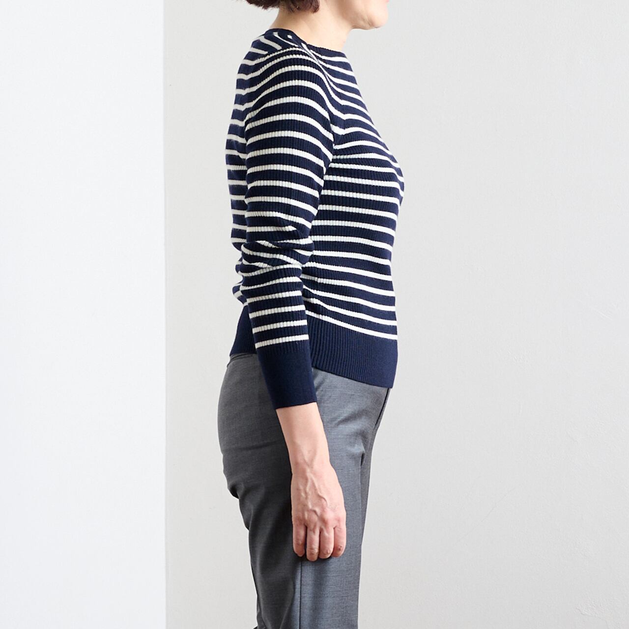 SLOANE スローン 14Gリブ メリノウール ボーダーラウンドネック SL7W-334 ネイビーXアイボリー/サイズ2
