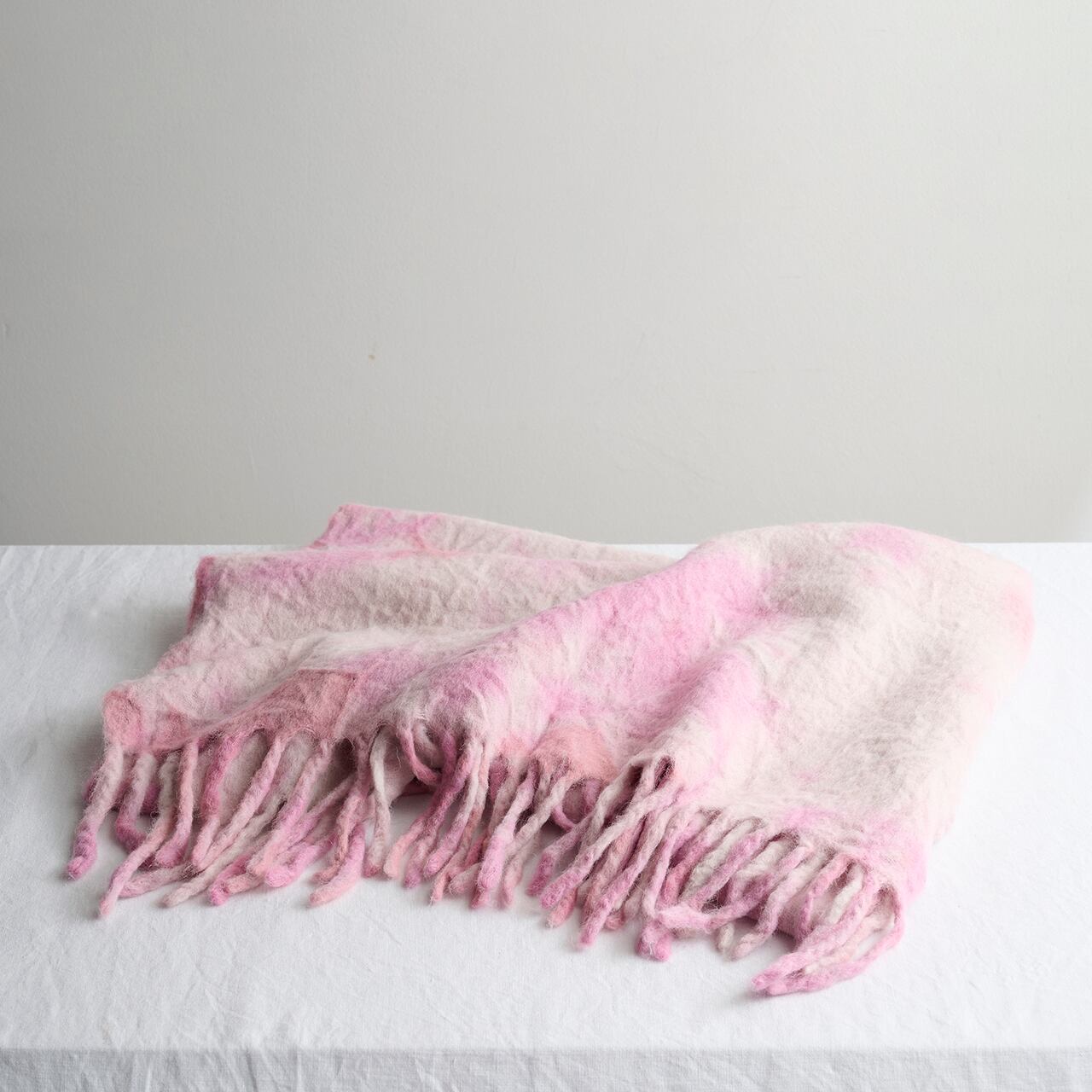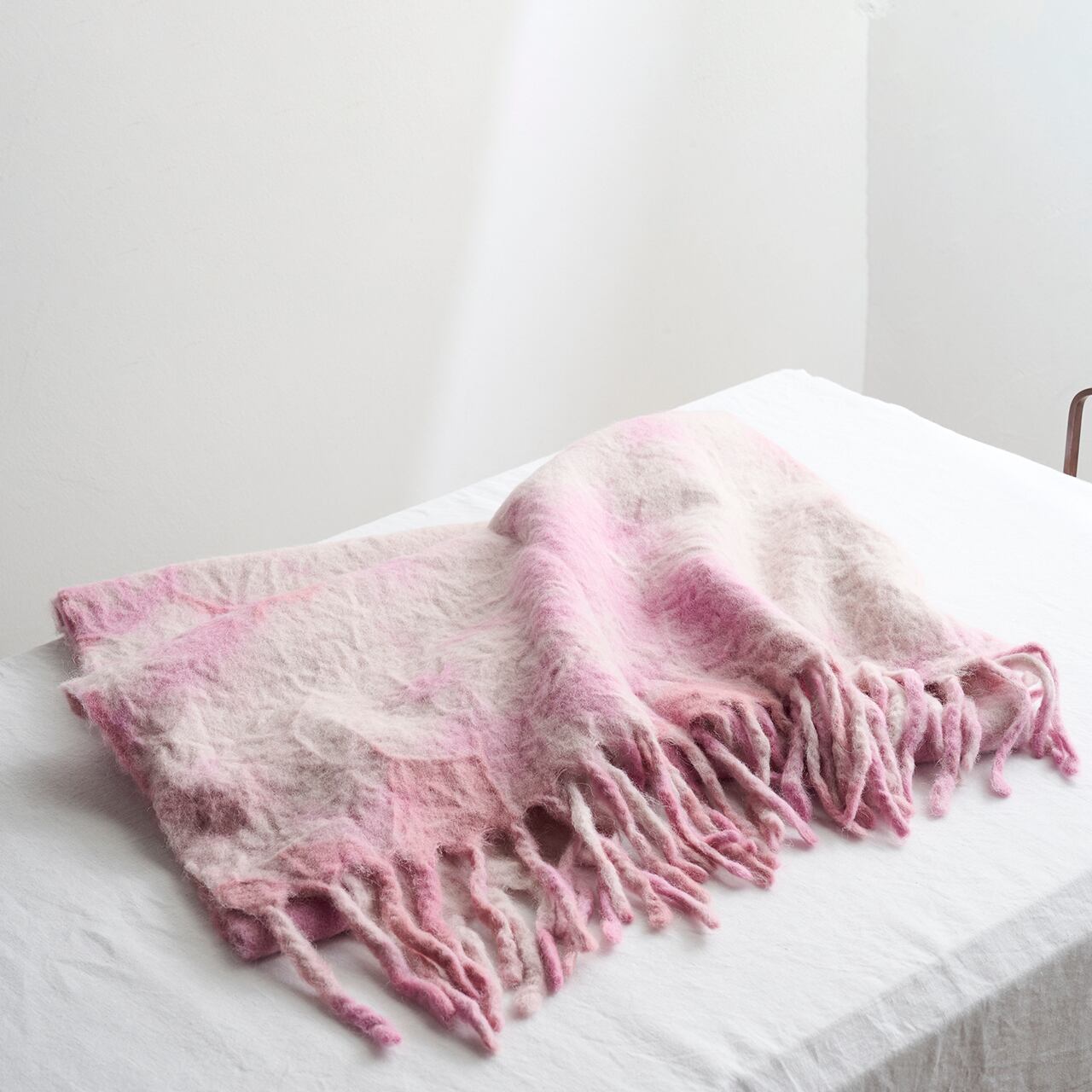 【40%off sale】ASAUCE MELER アソースメレ アルパカチャンキーフリンジ カゴ染め ストール Pink MIX