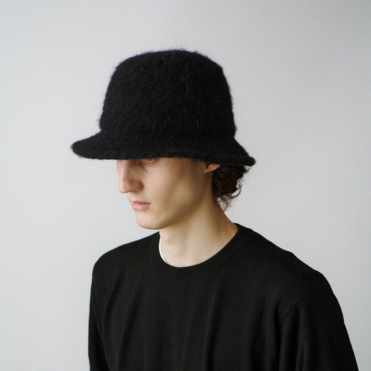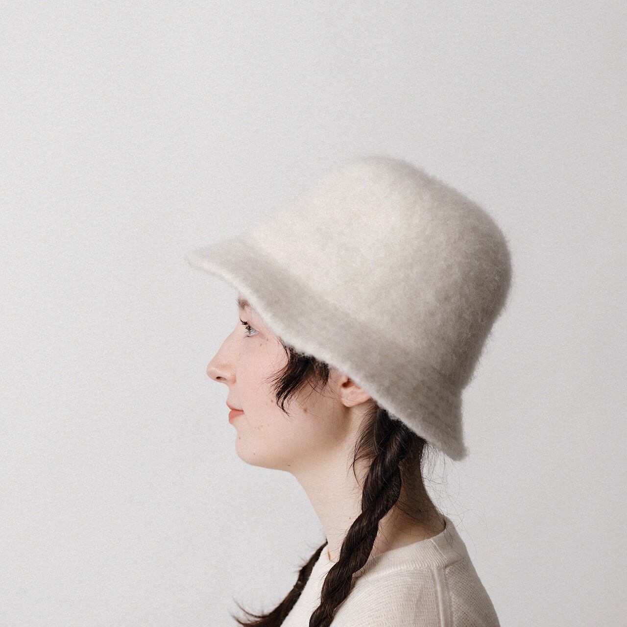 軽く優しい風合いのアルパカに上質なメリノウールをブレンドし成形した縮緘ハット。起毛感を残して温かみのある表情に仕上げています。
