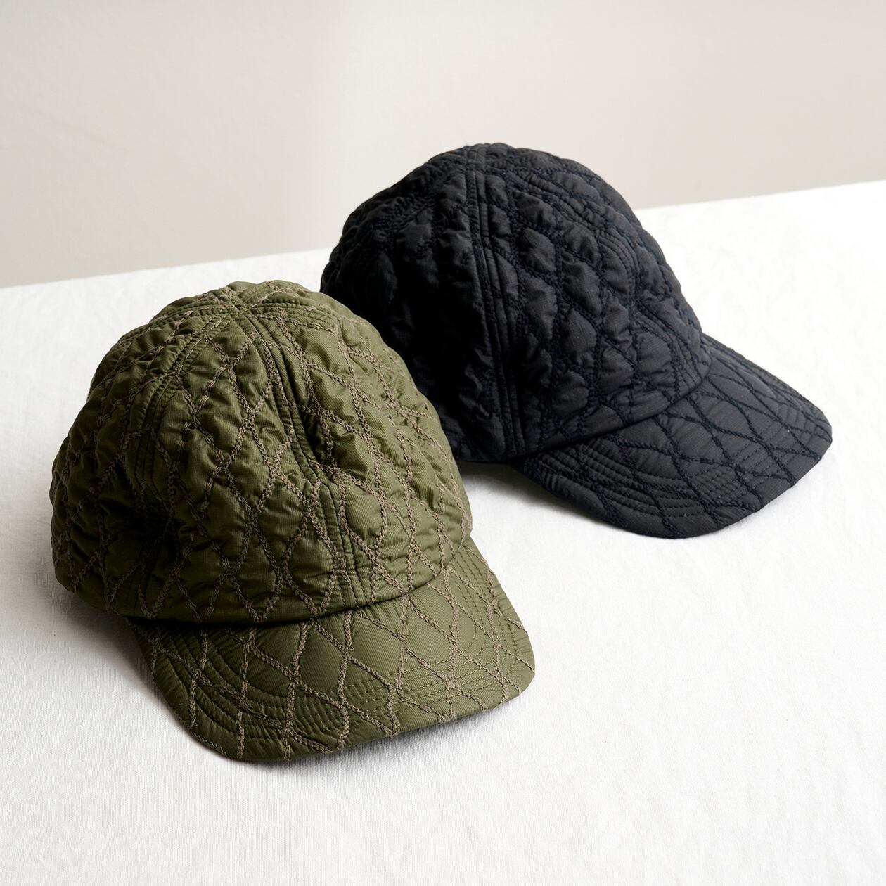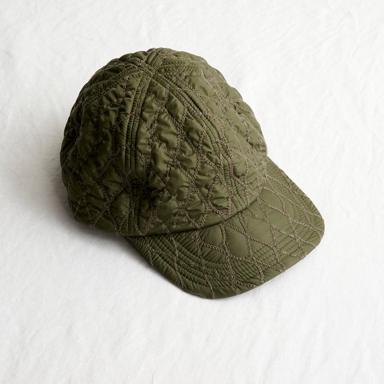 太めのキルト刺繍を施したダイヤキルティングが味わい深いリサイクルナイロンキャップ。