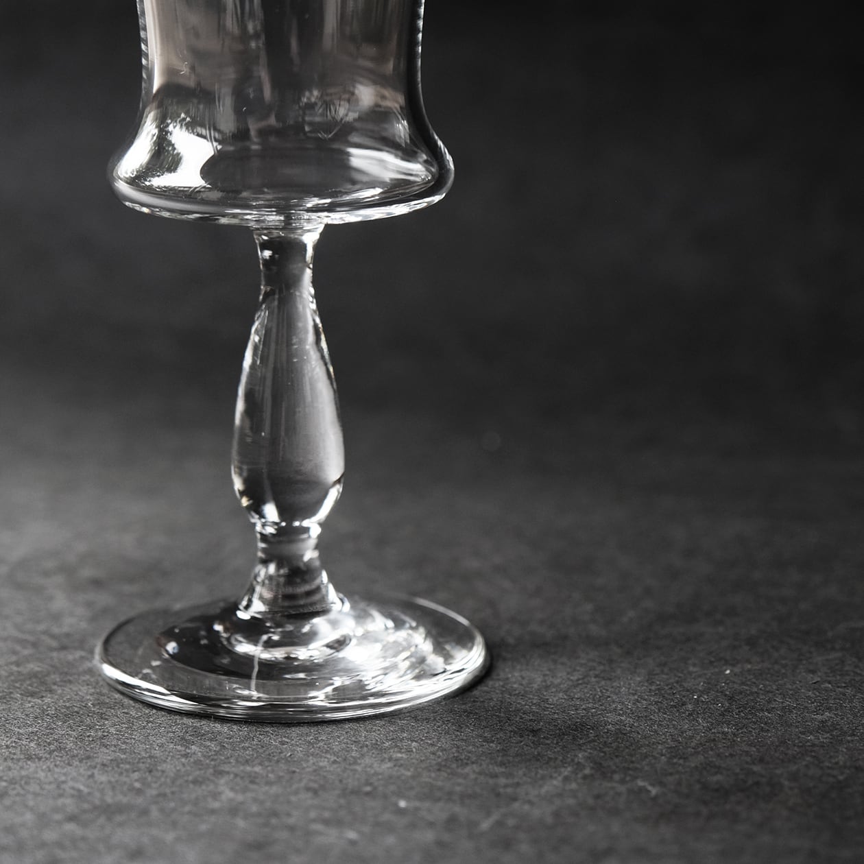 スッと立ち上がったようなフォルムが美しいステムゴブレットはボトム部分の変形意匠がユニークで美しく仕上がっています。ステムの意匠も魅入られます。
