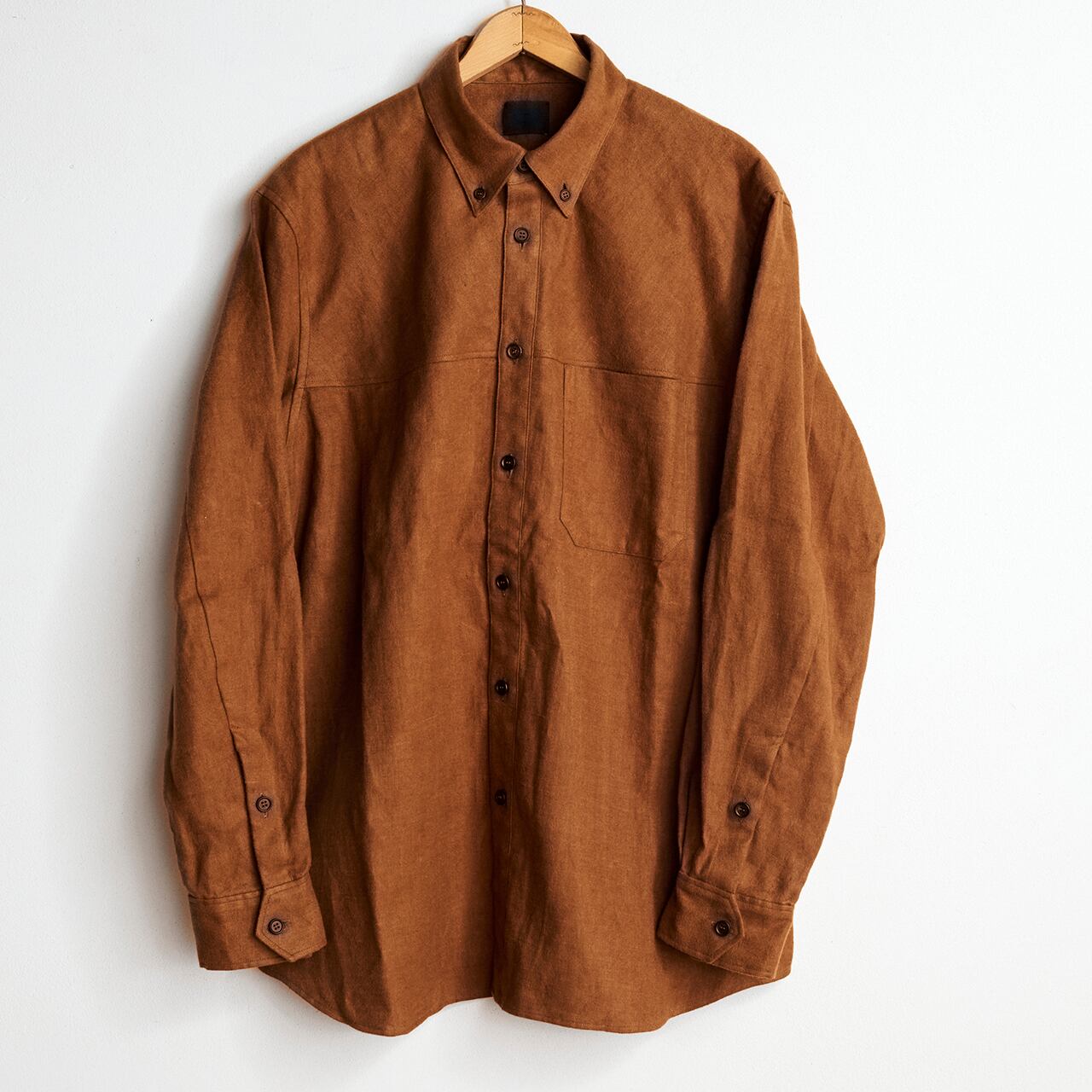 【30%off】山内 yamauchi ヘンプネル・ボタンダウンシャツ tabacco 24247