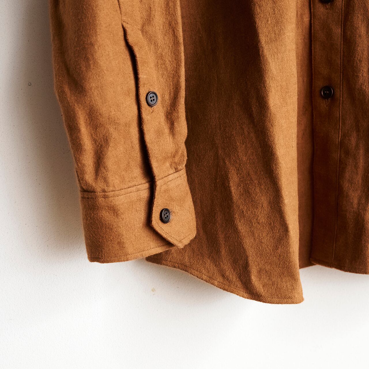 日本古来から親しまれてきたヘンプは、日本の気候にとても合い、速乾性、消臭性、抗菌性に優れているため、日本の気候に最適な素材です。夏に最適と思われるヘンプを、堅牢度の落ちない限界まで起毛をかけたネル素材は、冬のテキスタイルとして生まれ変わり、 ヘンプ 特有の光沢感も表面起毛加工によりツヤが消え、男らしさを増しています。