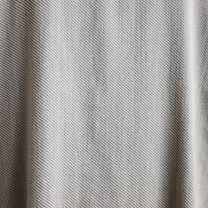 経はナイロン/PUのFTY、緯はPEとウールの交織を使用しています。経糸のFTYがタテ方向のストレッチ効果を生み、緯糸のPE x ウールは二重織組織にすることでリバーシブルに仕上げています。一見、綾組織に見えますが、実際は緯糸が経糸を12本飛ばしながら織られた特殊な織組織の素材で、それにより、生地の表面にウールを多く出し、よりソフトな優しい風合いになっています
