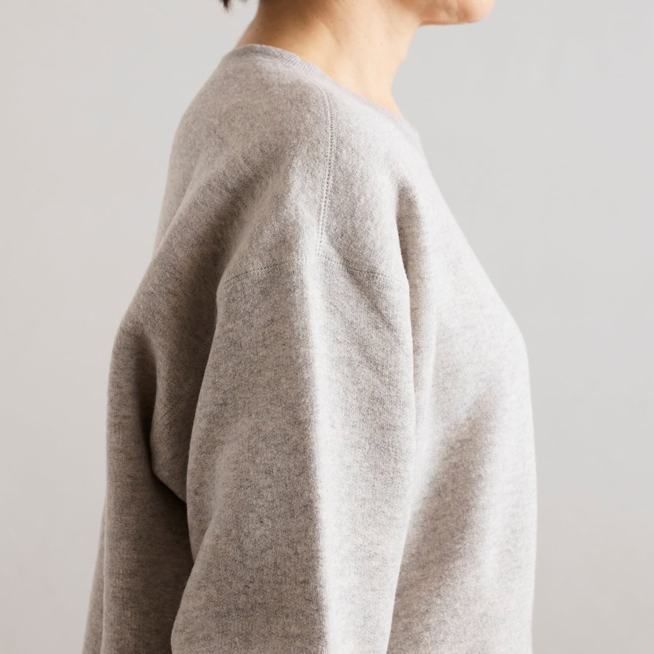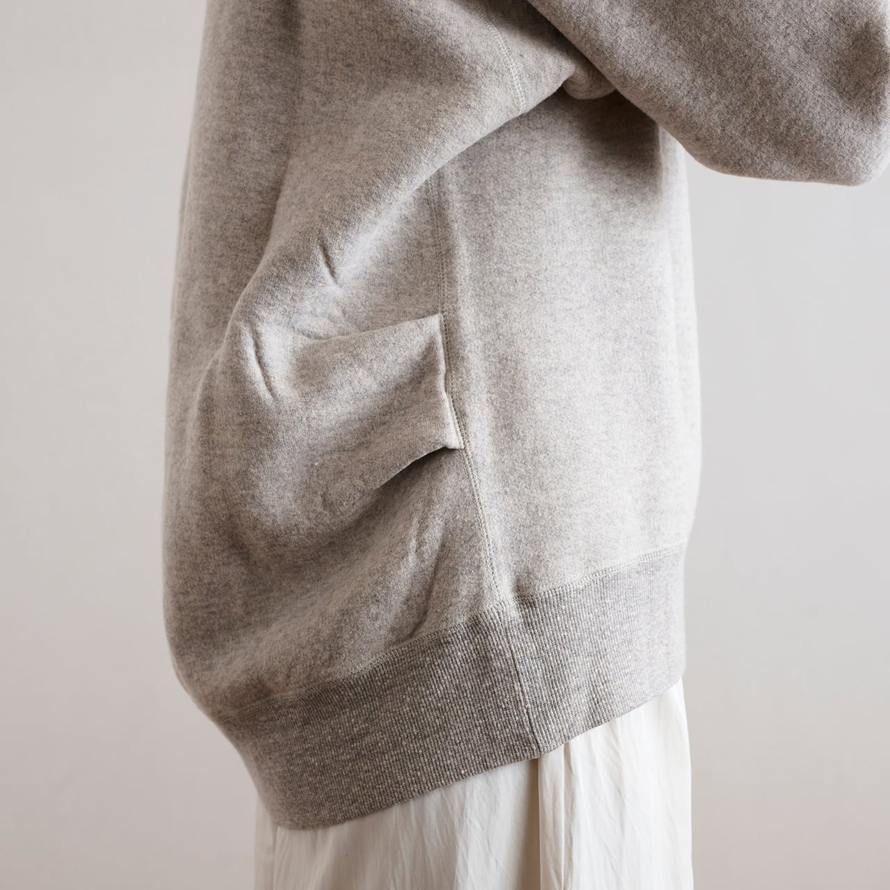 少しゆったりとしたシルエットが特徴的な、シンプルなスエット素材を使ったプルオーバーです。肩の落ち具合いや身頃の幅、また、少しコクーンシルエットになるように、サイズ感とカッティングにこだわって作られた特別なアイテムです。