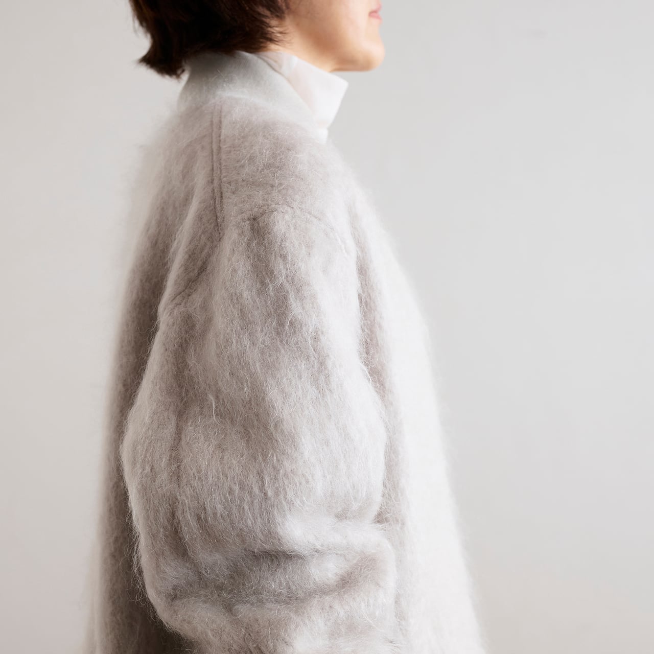 落ち着いたモヘアの光沢と、発色の良い複雑な色味によって派手さの中に上品さを感じられる稀有なアイテムに仕上がっています。