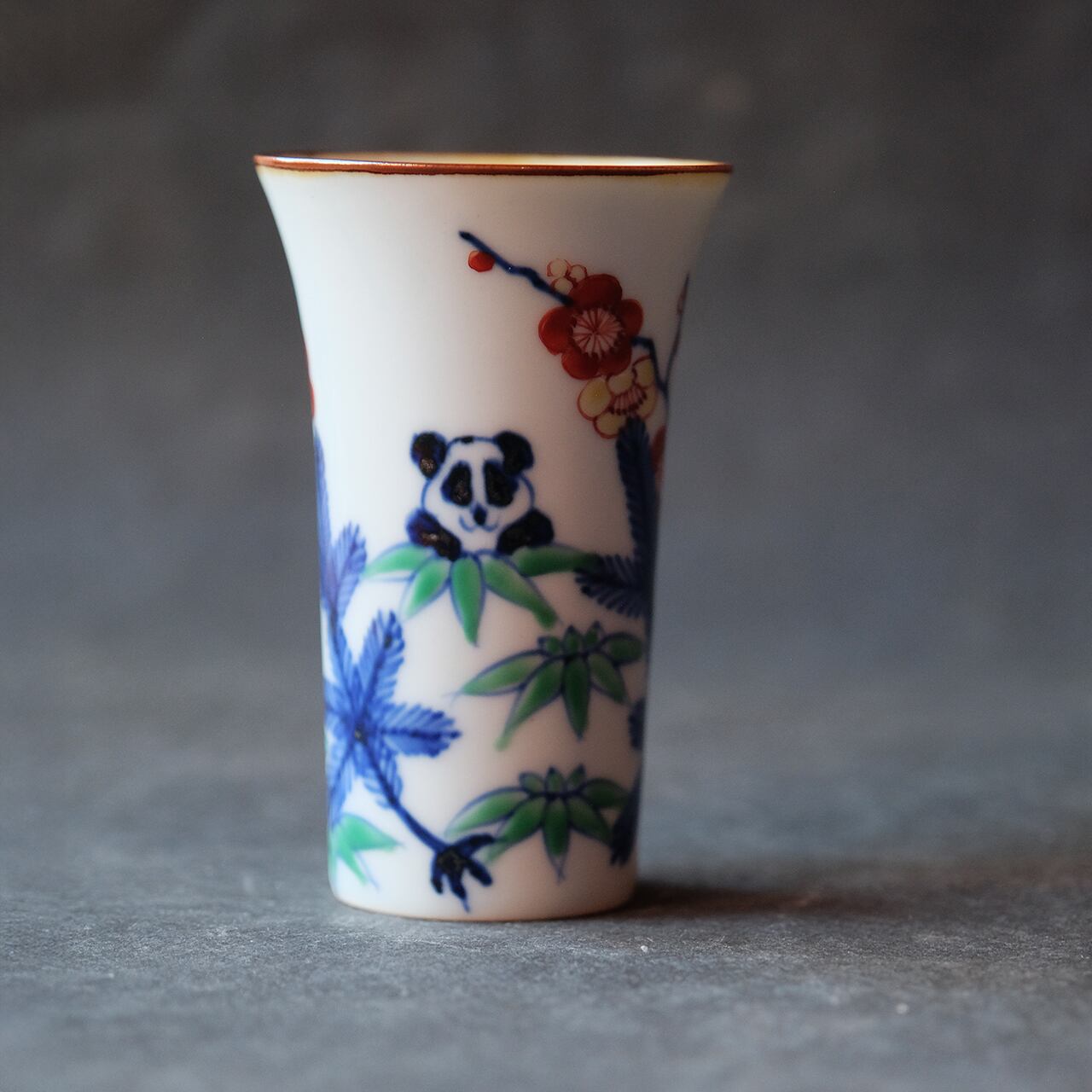 たなかふみえ FUMIE TANAKA グラス:B反小 ”染錦松竹梅パンダ” no.69