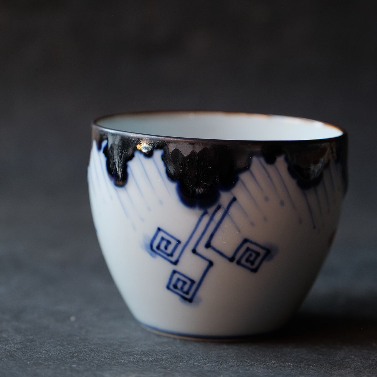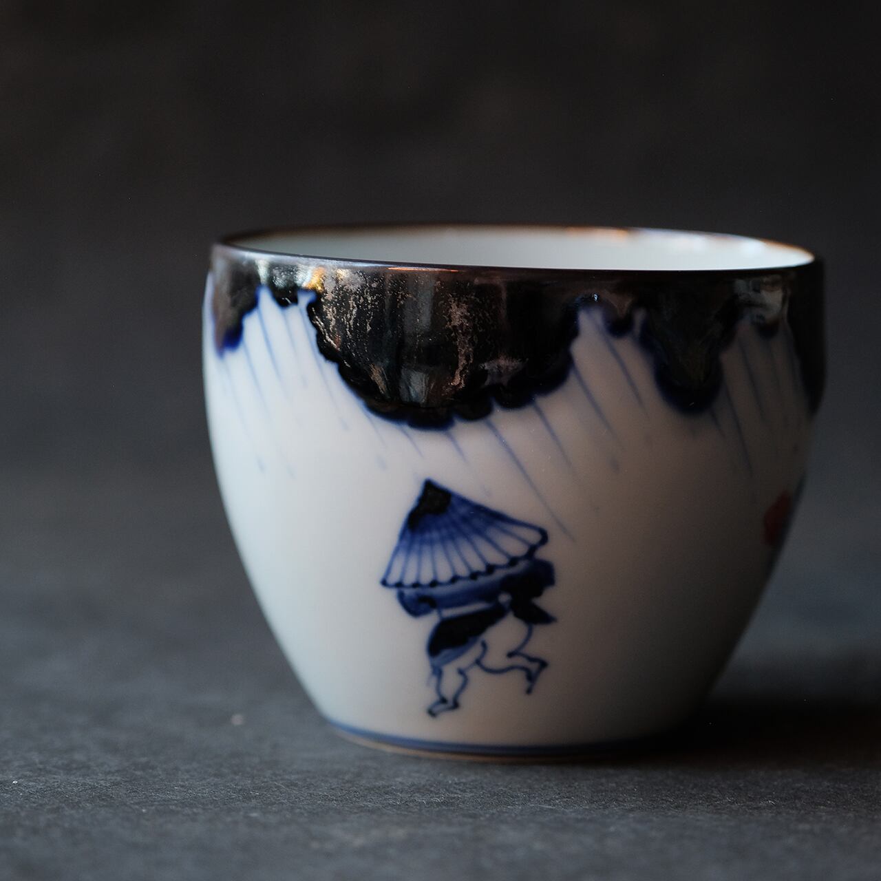 たなかふみえ FUMIE TANAKA 蕎麦猪口 ”雨降り人物紋”