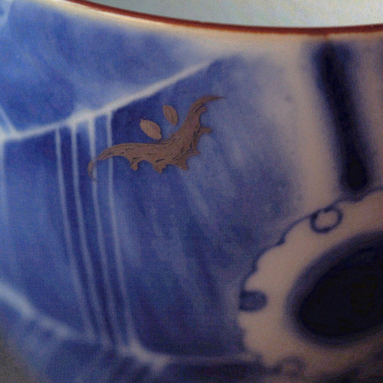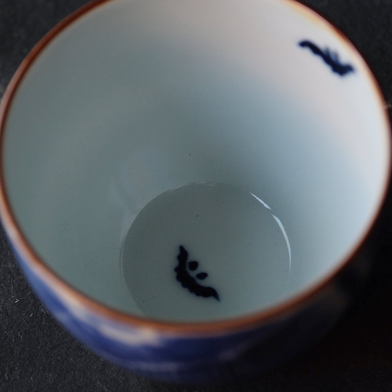 蝙蝠と蜘蛛の巣は吉兆の図柄。銀彩もあしらわれています