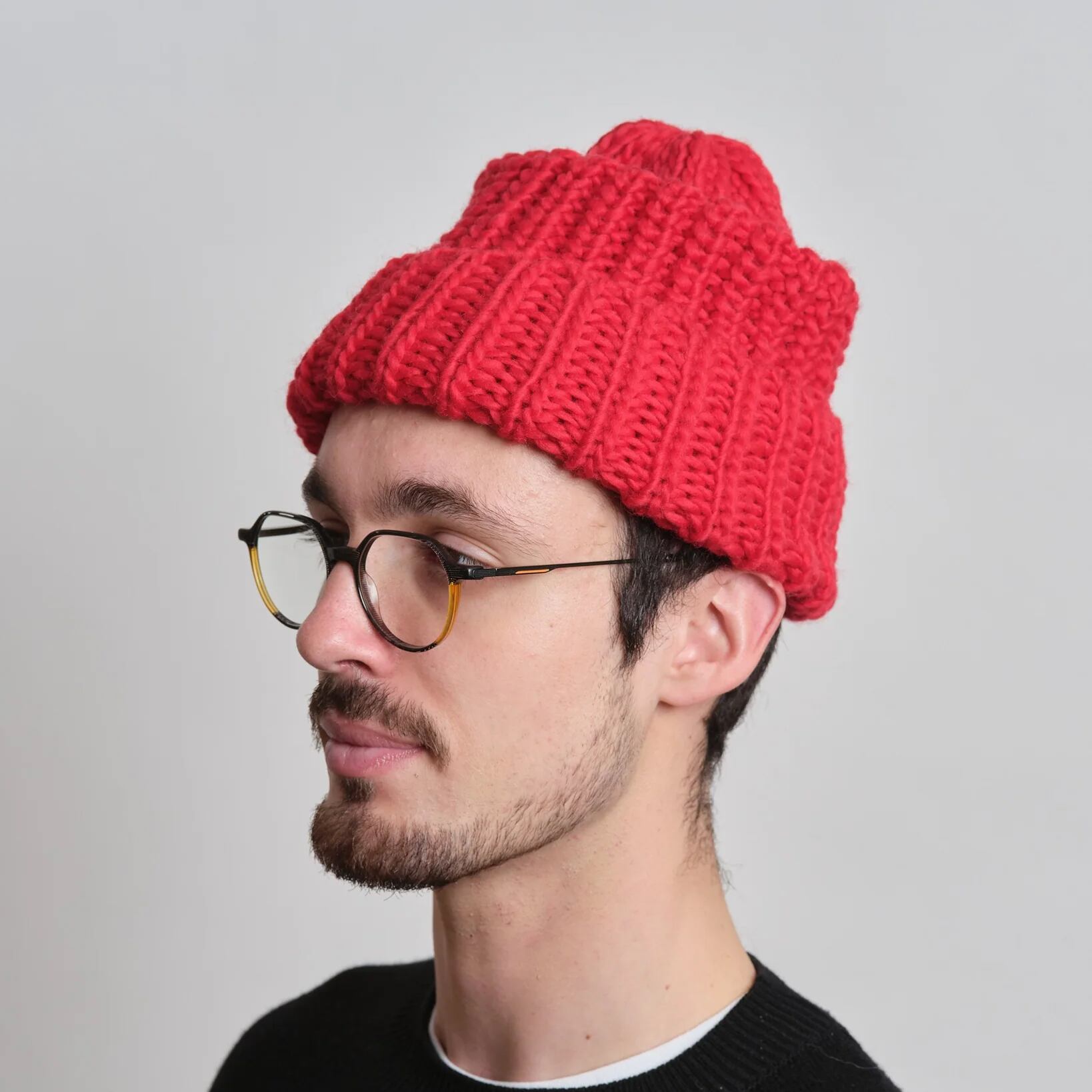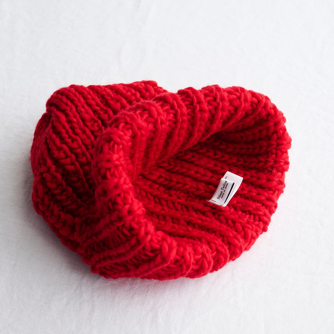 英国羊毛をブレンドし、もっちりした弾力とふわっとしたボリュームのニット帽。